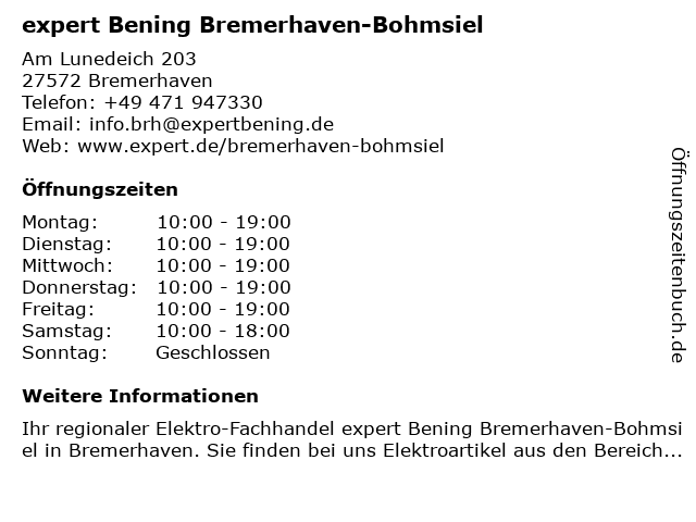 Expert Bening Filialen In Bremerhaven Offnungszeiten Jedewoche Rabatte De